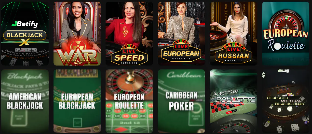 Les jeux de table de betify casino représentent la tradition du jeu d’adresse et de stratégie. Blackjack, roulette, baccarat ou poker : chaque jeu est conçu pour offrir un rythme fluide, des règles claires et un affichage soigné.
